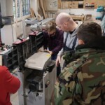 Seit wenigen Wochen haben wir dank einer großzügigen Dauerleihgabe einen neuen Abricht- und Dickenhobel in unserer Holzwerkstatt, an dem neulich die erste Gruppeneinweisung stattfand. Leisten, Bretter und Balken dürfen jetzt bis zu 31cm breit und – mit etwas Übung – auch bis zu 2 Meter lang sein. Es macht riesig Spaß damit zu arbeiten und es ist nun beinahe egal, wie schief und rau die Hölzer aus dem Baumarkt kommen.
