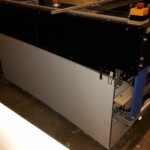 Die großformatigen Bleche sind mit etwa 30 Innensechskant Schrauben M8 und den passenden Nutensteinen in den Alu-Profilen fest verschraubt. Das wird der Maschine die notwendige Festigkeit für den geplanten Transport (Umzug) verleihen.