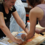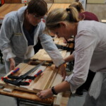 Da krankheitsbedingt leider ein anderer Workshop ausfallen musste, durften bei uns nun 30 Damen ein Vintage-Serviertablett bauen. Leider verzögerten sich dadurch einige Arbeitsschritte ziemlich. Die Teilnehmerinnen ließen sich davon dennoch nicht den Spaß verderben und am Ende konnte jede mit einem fertigen Tablett nach Hause gehen.